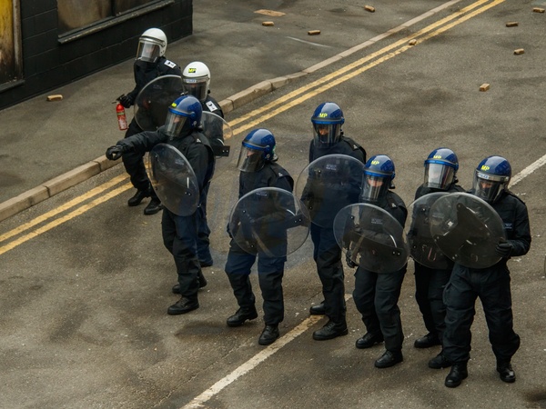London's Metropolitan Police training in the face of extreme civil disorder, featuring the use of petrol bombs/molotov cocktails. This training took place in conjunction with the NUJ and their visit to the Metropolitan Police Specialist Training Centre in Gravesend, Kent, UK, 7 November 2025, Credit:Alex Day / Avalon