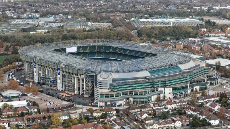 A general aerial view of The Allianz Stadium ahead of the Quilter Nations Series 2025 match England vs Fiji at Allianz Stadium, Twickenham, United Kingdom, 8th November 2025, Credit:Mark Cosgrove/News Images / Avalon