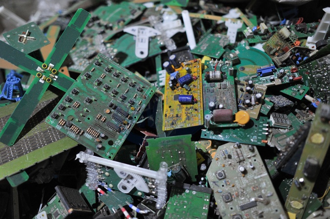Chattogram, Bangladesh: Computer waste products stored in a warehouse in Chittagong, Bangladesh. Discarded electronic components such as memory chips and circuit boards are part of the growing global e-waste stream. Market demanding countries like Pakistan, China, Hong Kong, and Dubai, similar materials are collected and recycled to recover valuable metals and reusable parts. Asia faces a high demand for e-waste recycling due to its role as both a major producer and consumer of electronics, resulting in large volumes of waste., Credit:Md Rafayat Haque Khan / Avalon