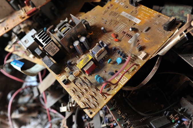 Chattogram, Bangladesh: Computer waste products stored in a warehouse in Chittagong, Bangladesh. Discarded electronic components such as memory chips and circuit boards are part of the growing global e-waste stream. Market demanding countries like Pakistan, China, Hong Kong, and Dubai, similar materials are collected and recycled to recover valuable metals and reusable parts. Asia faces a high demand for e-waste recycling due to its role as both a major producer and consumer of electronics, resulting in large volumes of waste., Credit:Md Rafayat Haque Khan / Avalon