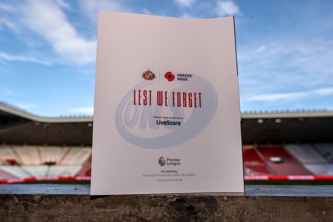 The back cover of the remembrance match programme during the Premier League match Sunderland vs Arsenal at Stadium Of Light, Sunderland, United Kingdom, 8th November 2025, Credit:Ae Cosgrove/News Images / Avalon