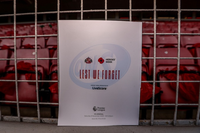 The back cover of the remembrance match programme during the Premier League match Sunderland vs Arsenal at Stadium Of Light, Sunderland, United Kingdom, 8th November 2025, Credit:Ae Cosgrove/News Images / Avalon