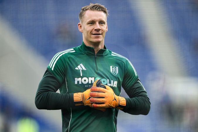 Bernd Leno of Fulham warms up ahead of the Premier League match Everton vs Fulham at Hill Dickinson Stadium, Liverpool, United Kingdom, 8th November 2025, Credit:Jorge Horsted/News Images / Avalon