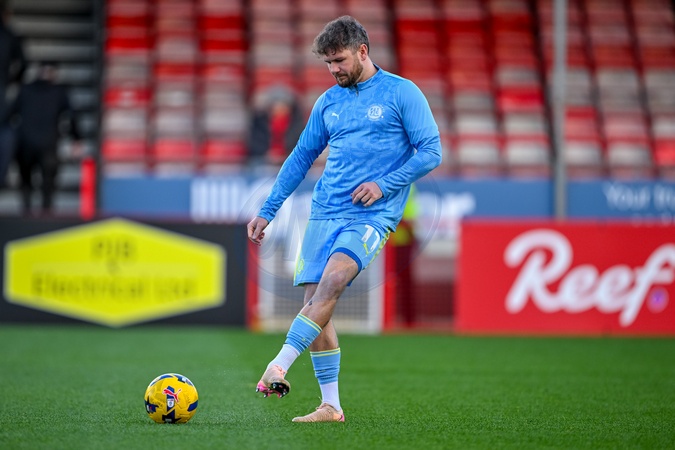 James Norwood of Fleetwood Town warms up during the Sky Bet League 2 match Crawley Town vs Fleetwood Town at The People's Pension Stadium, Crawley, United Kingdom, 8th November 2025, Credit:Adam Gee/News Images / Avalon