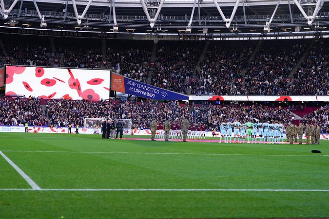 View of minute silence held for November 11th during the Premier League match West Ham United vs Burnley at London Stadium, London, United Kingdom, 8th November 2025, Credit:Harvey Murphy/News Images / Avalon