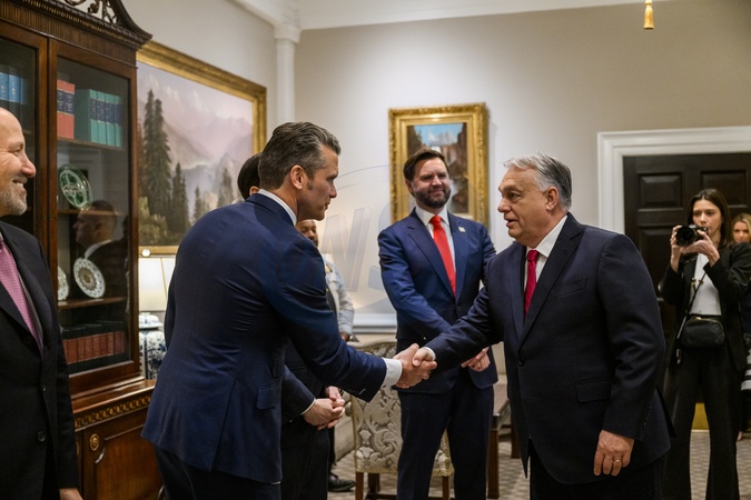 Hungarian Prime Minister Viktor Orban greets Secretary of War Pete Hegseth and members of the U.S. delegation in the West Wing Lobby of the White House, Friday, November 7, 2025, before a meeting with President Donald Trump., Credit:Molly Riley / Avalon