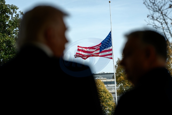 President Donald Trump speaks with Hungarian Prime Minister Viktor Orban outside of the Oval Office before a bilateral meeting, Friday, November 7, 2025., Credit:Daniel Torok / Avalon