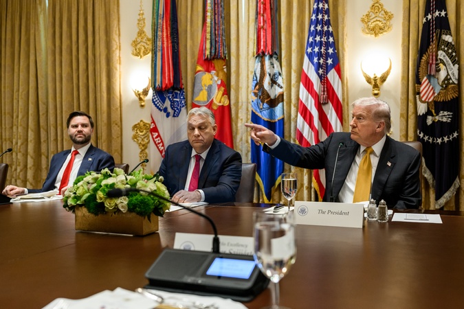 President Donald Trump takes questions from members of the media during a bilateral lunch meeting with Hungarian Prime Minister Viktor Orban in the Cabinet Room, Friday, November 7, 2025., Credit:Daniel Torok / Avalon