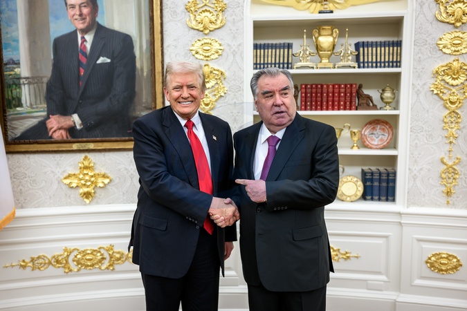 President Donald Trump meets with the President of the Republic of Tajikstan Emomali Rahmon in the Oval Office before a dinner with other C5 Central Asian leaders, Thursday, November 6, 2025., Credit:Daniel Torok / Avalon