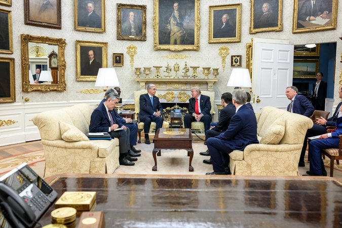 President Donald Trump meets with President of the Republic of Kazakhstan Kassym-Jomart Tokayev in the Oval Office before a dinner with other C5 Central Asian leaders, Thursday, November 6, 2025., Credit:Daniel Torok / Avalon