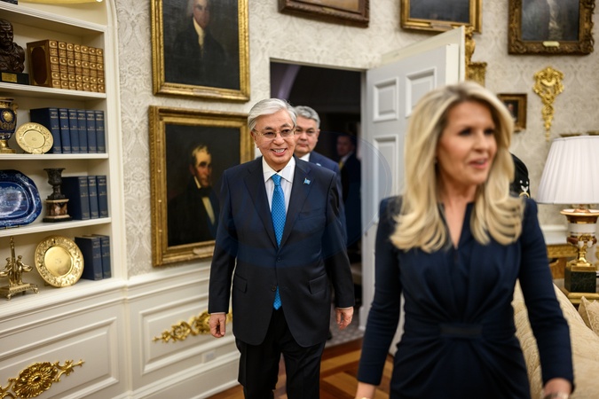 President Donald Trump meets with President of the Republic of Kazakhstan Kassym-Jomart Tokayev in the Oval Office before a dinner with other C5 Central Asian leaders, Thursday, November 6, 2025., Credit:Daniel Torok / Avalon