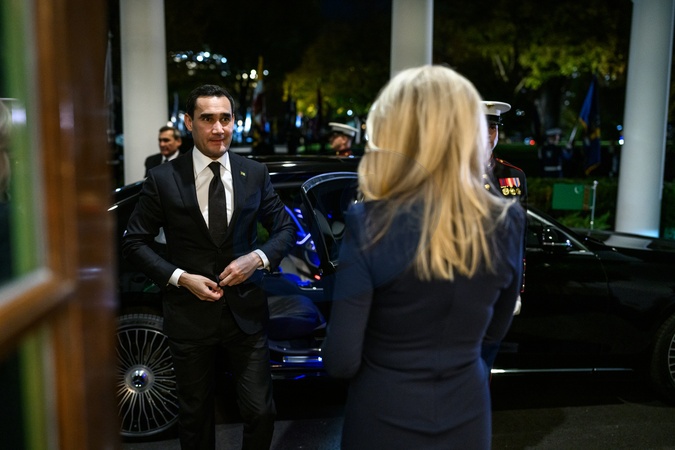 The President of the Republic of Turkmenistan Serdar Gurbangulyýewiç Berdimuhamedow is greeted at the West Wing Lobby by Chief of Protocol Monica Crowley before a dinner with President Donald Trump and other C5 Central Asian leaders, Thursday, November 6, 2025., Credit:Molly Riley / Avalon