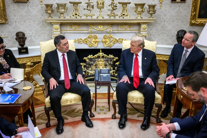 President Donald Trump meets with the President of the Kyrgyzstan Republic Sadyr Nurgojo uulu Japarov in the Oval Office before a dinner with other C5 Central Asian leaders, Thursday, November 6, 2025., Credit:Daniel Torok / Avalon