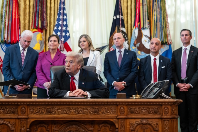 President Donald Trump makes an announcement on lowering drug prices alongside pharmaceutical representatives and Cabinet members in the Oval Office, Thursday, November 6, 2025., Credit:Abe McNatt / Avalon