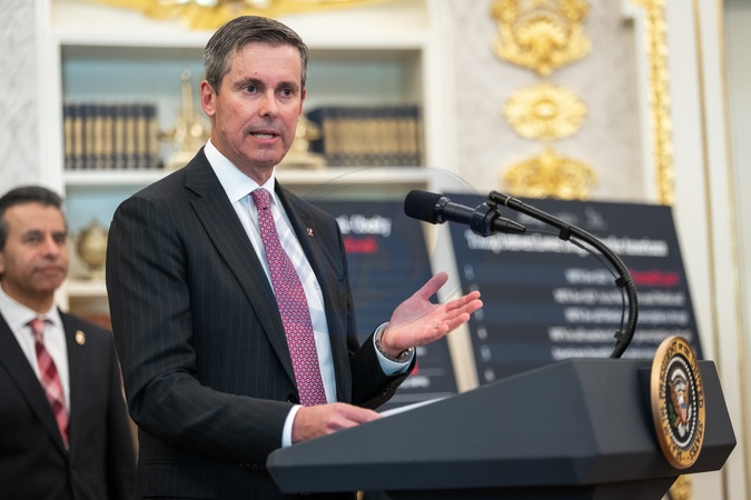 President Donald Trump makes an announcement on lowering drug prices alongside pharmaceutical representatives and Cabinet members in the Oval Office, Thursday, November 6, 2025., Credit:Abe McNatt / Avalon