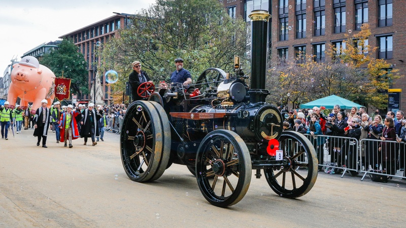 London, UK. 08th Nov, 2025. A steam engine leads the way for one group. The three-mile long procession showcases tradition, pageantry, as well as the modern City of London with military bands, livery companies, community groups, charities and others, featuring around 7, 000 participants, 200 horses and over 50 decorated floats. For the first time in its 800 year history, the procession is called Lady Mayor's Show as the new Lady Mayor, Dame Susan Langley DBE, is welcomed to the City of London., Credit:Imageplotter / Avalon