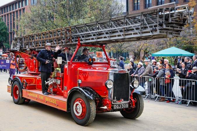 London, UK. 08th Nov, 2025. A historic fire engine with the Worshipful Company of Firefighters. The three-mile long procession showcases tradition, pageantry, as well as the modern City of London with military bands, livery companies, community groups, charities and others, featuring around 7, 000 participants, 200 horses and over 50 decorated floats. For the first time in its 800 year history, the procession is called Lady Mayor's Show as the new Lady Mayor, Dame Susan Langley DBE, is welcomed to the City of London., Credit:Imageplotter / Avalon