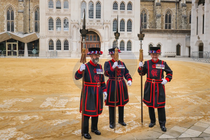 London, UK. 08th Nov, 2025. Early morning preparations around the Guildhall. The three-mile long procession showcases tradition, pageantry, as well as the modern City of London with military bands, livery companies, community groups, charities and others, featuring around 7, 000 participants, 200 horses and over 50 decorated floats. For the first time in its 800 year history, the procession is called Lady Mayor's Show as the new Lady Mayor, Dame Susan Langley DBE, is welcomed to the City of London., Credit:Imageplotter / Avalon