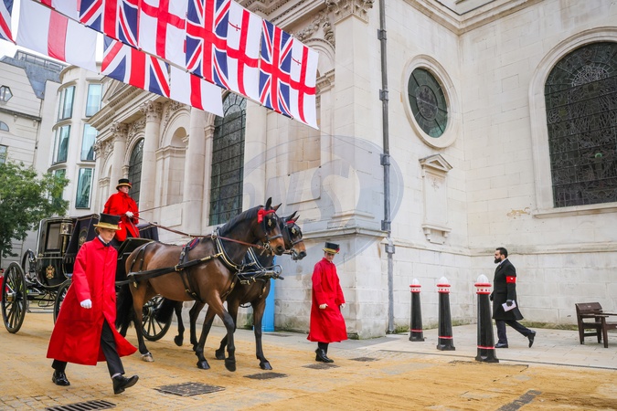 London, UK. 08th Nov, 2025. Early morning preparations around the Guildhall. The three-mile long procession showcases tradition, pageantry, as well as the modern City of London with military bands, livery companies, community groups, charities and others, featuring around 7, 000 participants, 200 horses and over 50 decorated floats. For the first time in its 800 year history, the procession is called Lady Mayor's Show as the new Lady Mayor, Dame Susan Langley DBE, is welcomed to the City of London., Credit:Imageplotter / Avalon