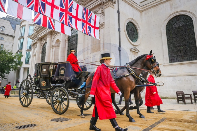 London, UK. 08th Nov, 2025. Early morning preparations around the Guildhall. The three-mile long procession showcases tradition, pageantry, as well as the modern City of London with military bands, livery companies, community groups, charities and others, featuring around 7, 000 participants, 200 horses and over 50 decorated floats. For the first time in its 800 year history, the procession is called Lady Mayor's Show as the new Lady Mayor, Dame Susan Langley DBE, is welcomed to the City of London., Credit:Imageplotter / Avalon