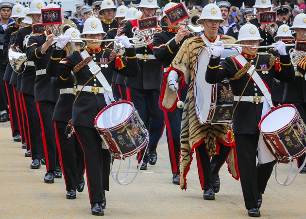 London, UK. 08th Nov, 2025. A military band marches past St Paul's. The three-mile long procession showcases tradition, pageantry, as well as the modern City of London with military bands, livery companies, community groups, charities and others, featuring around 7, 000 participants, 200 horses and over 50 decorated floats. For the first time in its 800 year history, the procession is called Lady Mayor's Show as the new Lady Mayor, Dame Susan Langley DBE, is welcomed to the City of London., Credit:Imageplotter / Avalon