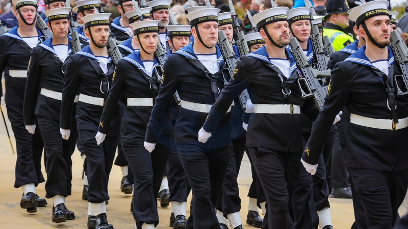 London, UK. 08th Nov, 2025. A navy group marches past St Paul's. The three-mile long procession showcases tradition, pageantry, as well as the modern City of London with military bands, livery companies, community groups, charities and others, featuring around 7, 000 participants, 200 horses and over 50 decorated floats. For the first time in its 800 year history, the procession is called Lady Mayor's Show as the new Lady Mayor, Dame Susan Langley DBE, is welcomed to the City of London., Credit:Imageplotter / Avalon