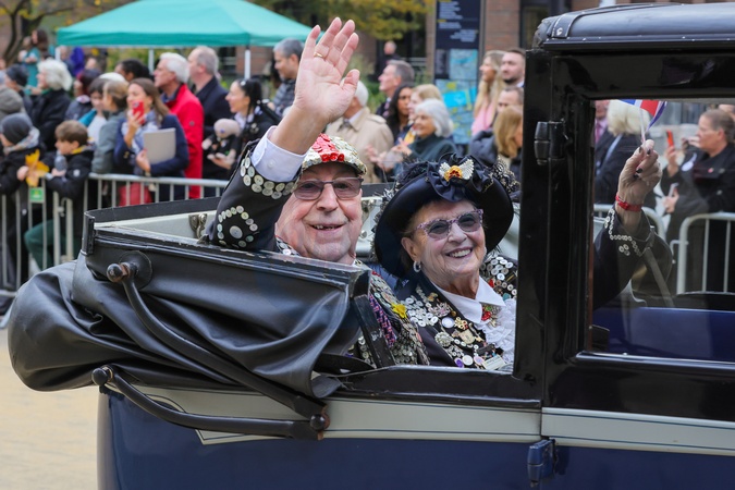 London, UK. 08th Nov, 2025. The Pearly Kings and Queens drive past St Paul's. The three-mile long procession showcases tradition, pageantry, as well as the modern City of London with military bands, livery companies, community groups, charities and others, featuring around 7, 000 participants, 200 horses and over 50 decorated floats. For the first time in its 800 year history, the procession is called Lady Mayor's Show as the new Lady Mayor, Dame Susan Langley DBE, is welcomed to the City of London., Credit:Imageplotter / Avalon