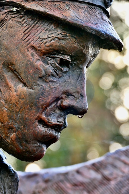 The Romsey War Horse Sculpture is decorated with a sheath of knitted poppies. Knitted poppies are on display in Romsey Abbey, The War Memorial Gardens, the War Memorial Statue and post boxes around the Hampshire market town in preparations for Sundays Remembrance Day Services., Credit:Geoffrey Swaine / Avalon