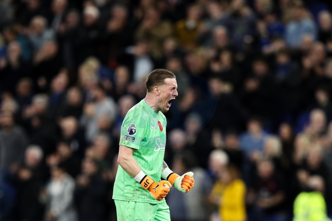 Jordan Pickford of Everton celebrates full time whistle during the Premier League match Everton vs Fulham at Hill Dickinson Stadium, Liverpool, United Kingdom, 8th November 2025, Credit:Jorge Horsted/News Images / Avalon