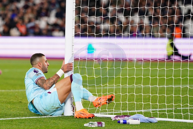 Kyle Walker of Burnley clashes into goalpost during the Premier League match West Ham United vs Burnley at London Stadium, London, United Kingdom, 8th November 2025, Credit:Harvey Murphy/News Images / Avalon