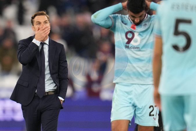 Scott Parker manager of Burnley at full time after the Premier League match West Ham United vs Burnley at London Stadium, London, United Kingdom, 8th November 2025, Credit:Harvey Murphy/News Images / Avalon
