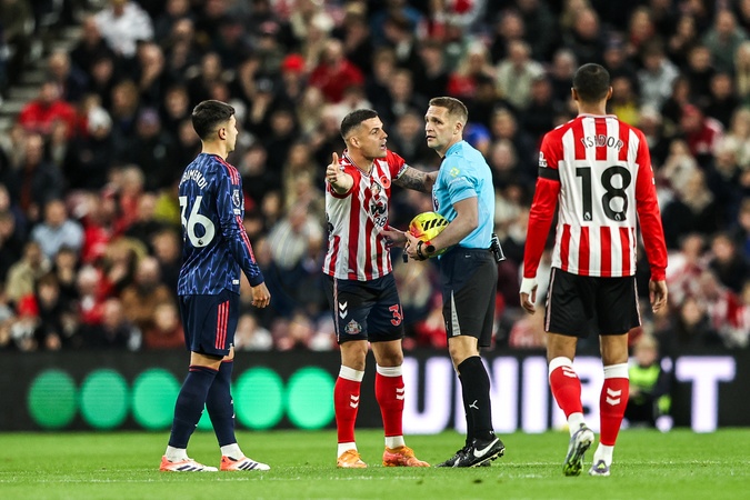 GranitXhaka of Sunderland appeals to referee Craig Pawson during the Premier League match Sunderland vs Arsenal at Stadium Of Light, Sunderland, United Kingdom, 8th November 2025, Credit:Ae Cosgrove/News Images / Avalon