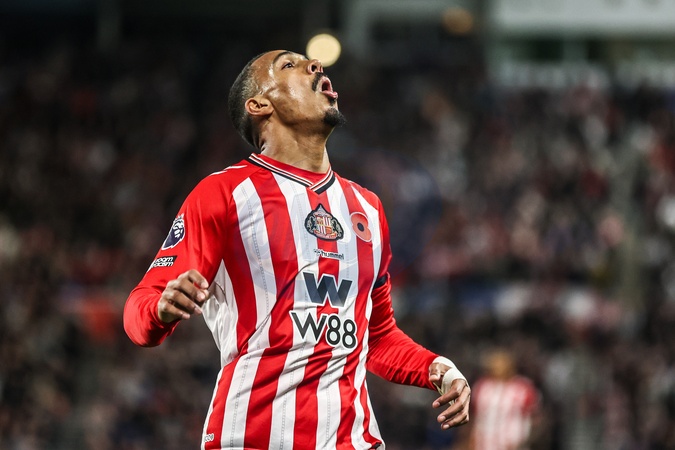 Wilson Isidor of Sunderland reacts after a missed shot on goal during the Premier League match Sunderland vs Arsenal at Stadium Of Light, Sunderland, United Kingdom, 8th November 2025, Credit:Ae Cosgrove/News Images / Avalon