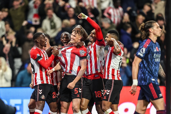 Daniel Ballard of Sunderland celebrates his goal to make it 1-0 during the Premier League match Sunderland vs Arsenal at Stadium Of Light, Sunderland, United Kingdom, 8th November 2025, Credit:Ae Cosgrove/News Images / Avalon