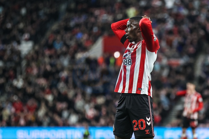 Nordi Mukiele of Sunderland reacts to a missed shot on goal during the Premier League match Sunderland vs Arsenal at Stadium Of Light, Sunderland, United Kingdom, 8th November 2025, Credit:Ae Cosgrove/News Images / Avalon