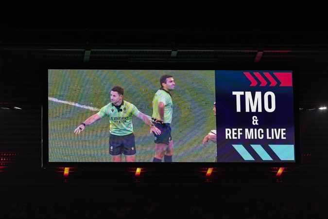 TMO and Referee Paul Williams wave away Simione Kuruvoli of Fiji's try, NO TRY during the Quilter Nations Series 2025 match England vs Fiji at Allianz Stadium, Twickenham, United Kingdom, 8th November 2025, Credit:Mark Cosgrove/News Images / Avalon