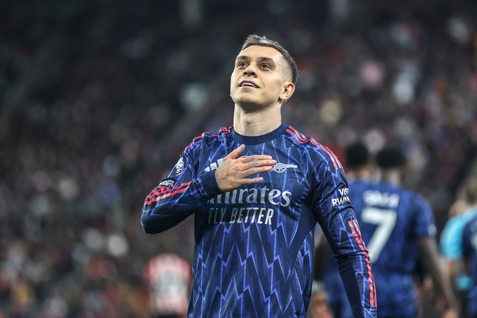 Leandro Trossard of Arsenal celebrates his goal to make it 1-2 during the Premier League match Sunderland vs Arsenal at Stadium Of Light, Sunderland, United Kingdom, 8th November 2025, Credit:Ae Cosgrove/News Images / Avalon