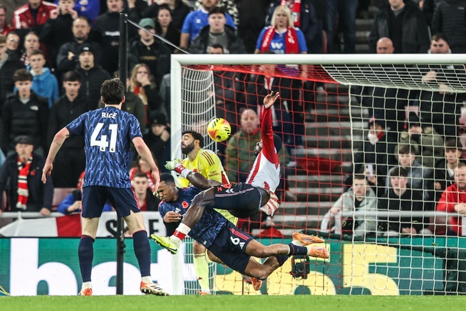 Marc Guiu of Sunderland scores to make it 2-2 during the Premier League match Sunderland vs Arsenal at Stadium Of Light, Sunderland, United Kingdom, 8th November 2025, Credit:Ae Cosgrove/News Images / Avalon