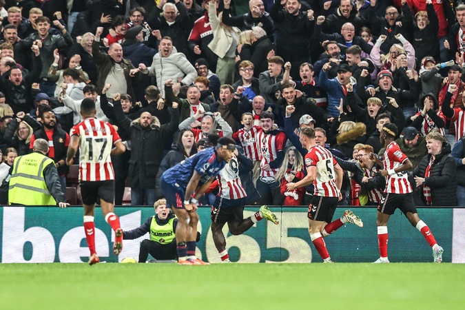 Marc Guiu of Sunderland scores to make it 2-2 during the Premier League match Sunderland vs Arsenal at Stadium Of Light, Sunderland, United Kingdom, 8th November 2025, Credit:Ae Cosgrove/News Images / Avalon
