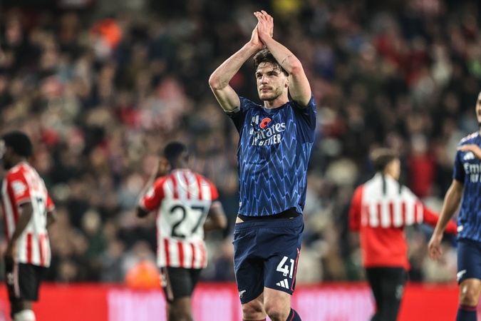Declan Rice of Arsenal applauds the fans after the game during the Premier League match Sunderland vs Arsenal at Stadium Of Light, Sunderland, United Kingdom, 8th November 2025, Credit:Ae Cosgrove/News Images / Avalon