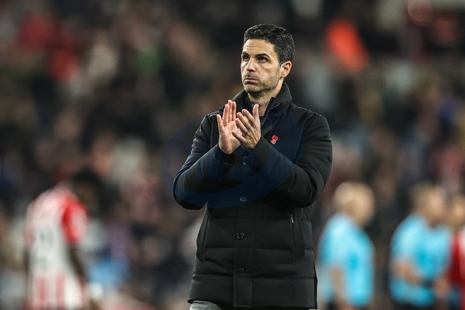 Mikel Arteta manager of Arsenal applauds the fans after the game during the Premier League match Sunderland vs Arsenal at Stadium Of Light, Sunderland, United Kingdom, 8th November 2025, Credit:Ae Cosgrove/News Images / Avalon