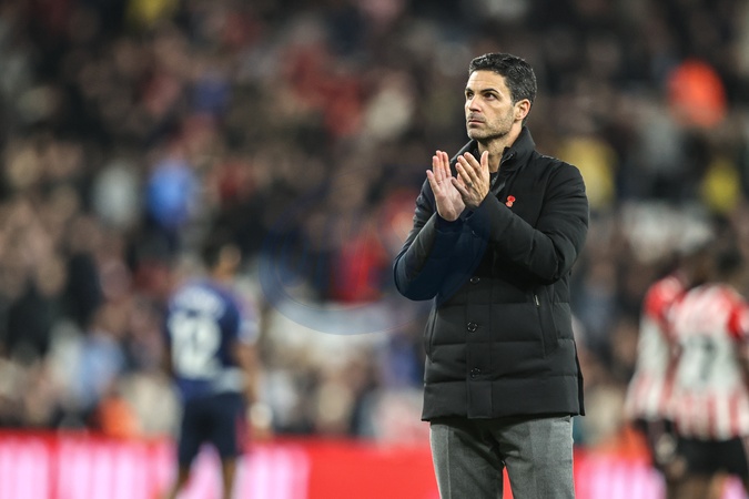 Mikel Arteta manager of Arsenal applauds the fans after the game during the Premier League match Sunderland vs Arsenal at Stadium Of Light, Sunderland, United Kingdom, 8th November 2025, Credit:Ae Cosgrove/News Images / Avalon