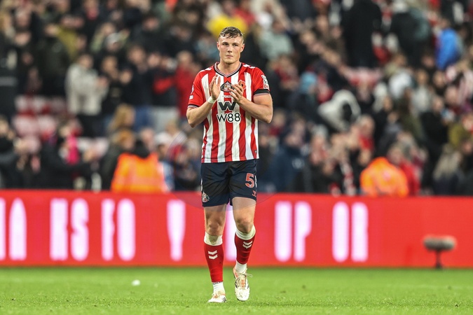 Daniel Ballard of Sunderland applauds the fans after the game during the Premier League match Sunderland vs Arsenal at Stadium Of Light, Sunderland, United Kingdom, 8th November 2025, Credit:Ae Cosgrove/News Images / Avalon