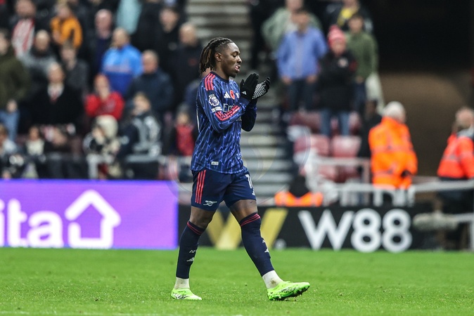 Eberechi Eze of Arsenal applauds the fans as he is substituted off during the Premier League match Sunderland vs Arsenal at Stadium Of Light, Sunderland, United Kingdom, 8th November 2025, Credit:Ae Cosgrove/News Images / Avalon