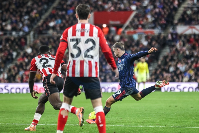 Leandro Trossard of Arsenal scores to make it 1-2 during the Premier League match Sunderland vs Arsenal at Stadium Of Light, Sunderland, United Kingdom, 8th November 2025, Credit:Ae Cosgrove/News Images / Avalon