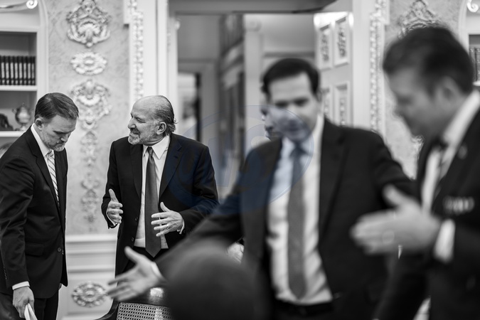 Secretary of Commerce Howard Lutnick speaks with Trade Representative Jamieson Greer in the Oval Office before the arrival of Prime Minister Viktor Orban of Hungary, Friday, November 7, 2025., Credit:Daniel Torok / Avalon