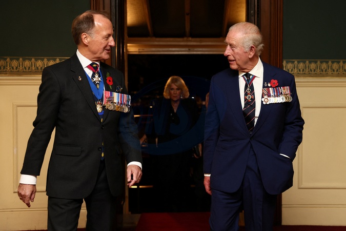 Britain's King Charles and Queen Camilla arrive at the Royal Albert Hall for the Royal British Legion Festival of Remembrance, an annual event honouring military service members, which holds special significance in 2025 as it marks the 80th anniversary of the end of World War Two, at the Royal Albert Hall in London, Britain, November 8, 2025., Credit:Jack Taylor / Avalon