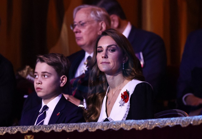Britain's Catherine, Princess of Wales, and Prince George attend the Royal British Legion Festival of Remembrance, an annual event honouring military service members, which holds special significance in 2025 as it marks the 80th anniversary of the end of World War Two, at the Royal Albert Hall in London, Britain, November 8, 2025., Credit:Jack Taylor / Avalon