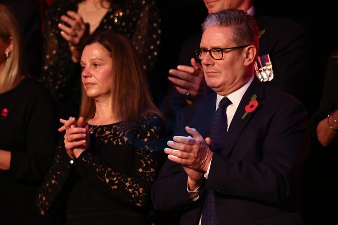 British Prime Minister Keir Starmer and his wife Victoria Starmer attend the Royal British Legion Festival of Remembrance, an annual event honouring military service members, which holds special significance in 2025 as it marks the 80th anniversary of the end of World War Two, at the Royal Albert Hall in London, Britain, November 8, 2025., Credit:Jack Taylor / Avalon