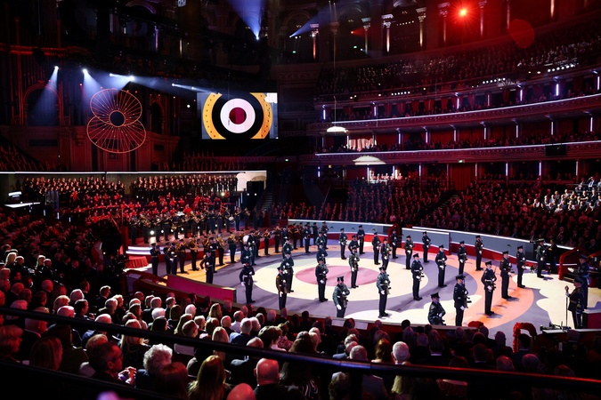 Members of the Royal Air Force take part in the Royal British Legion Festival of Remembrance, an annual event honouring military service members, which holds special significance in 2025 as it marks the 80th anniversary of the end of World War Two, at the Royal Albert Hall in London, Britain, November 8, 2025., Credit:Jack Taylor / Avalon